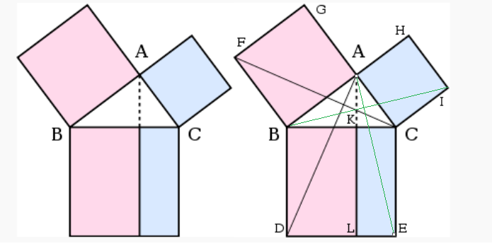 总的来说,欧几里得的勾股定理是数学史上的一个重要成就。他的证明方法不仅揭示了直角三角形的一些基本性质,而且为后来的数学家提供了宝贵的启示。
