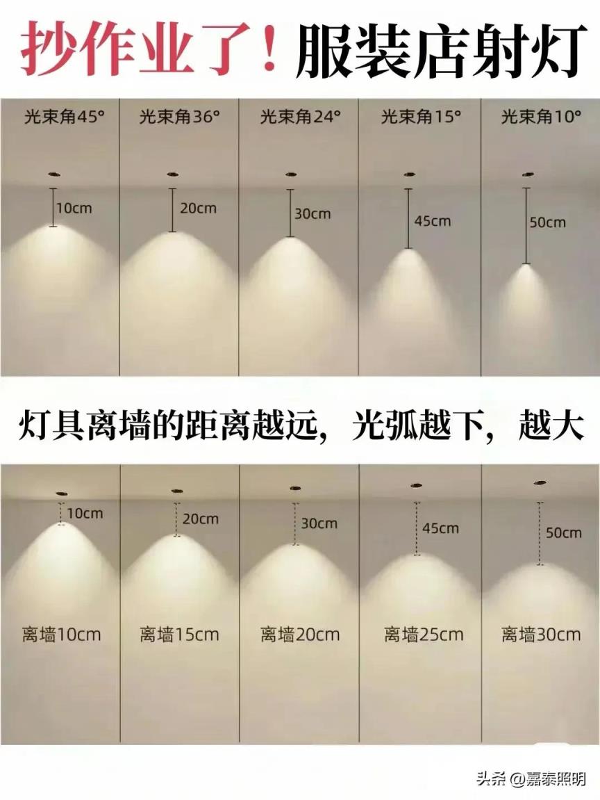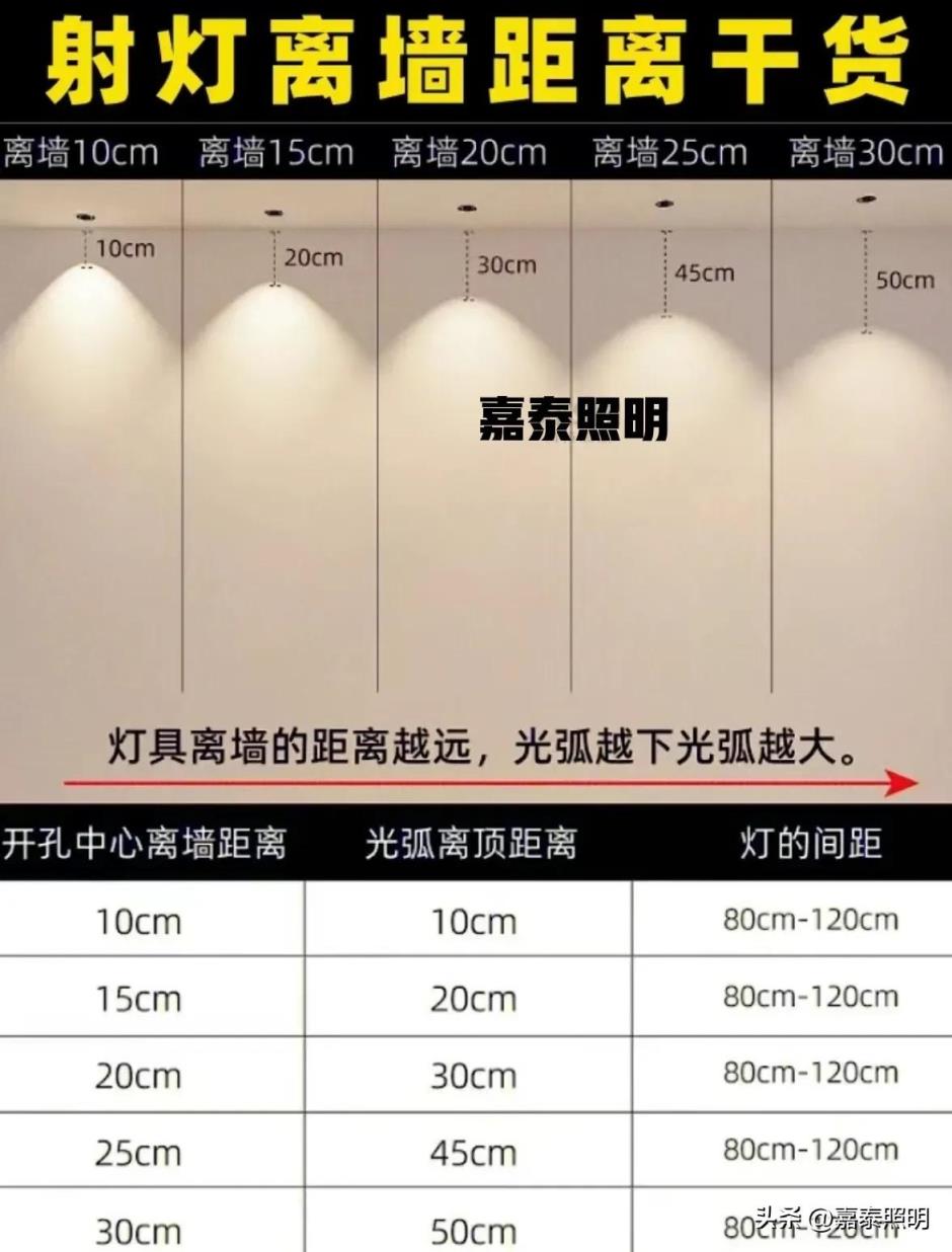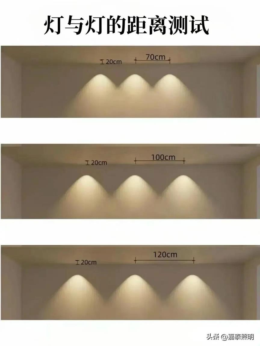 灯与灯的间距在0.5-0.8米一盏较为合适:商用灯与墙距离1米内较为合适