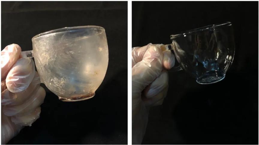 玻璃上的污垢也可以擦拭干净,大家可以看看前后的清洁效果,擦完就像是新的一样。