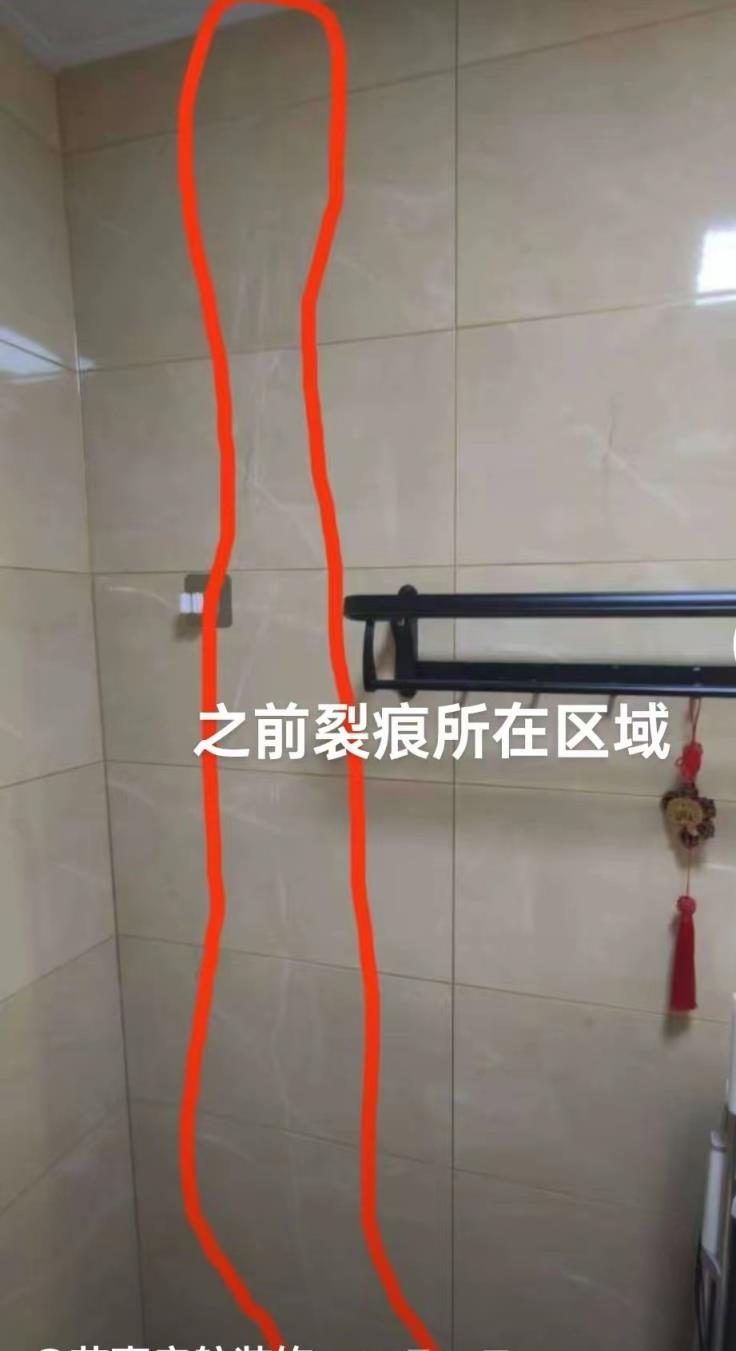 墙体下沉开裂,即便是贴瓷砖也会开裂。