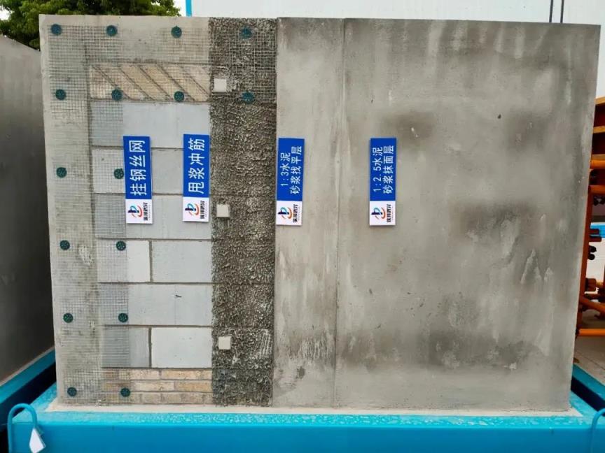 1)拍浆材料,采用PO42.5级普通硅酸盐水泥和建筑胶进行调配;并检查拍浆成型强度和毛刺感;