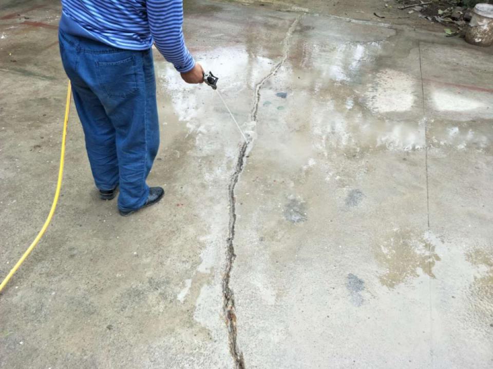 具体的操作方法是:将裂缝周围的混凝土凿毛后,清理干净后再用高压水冲洗干净,并把裂缝内的尘土及杂物清除干净;