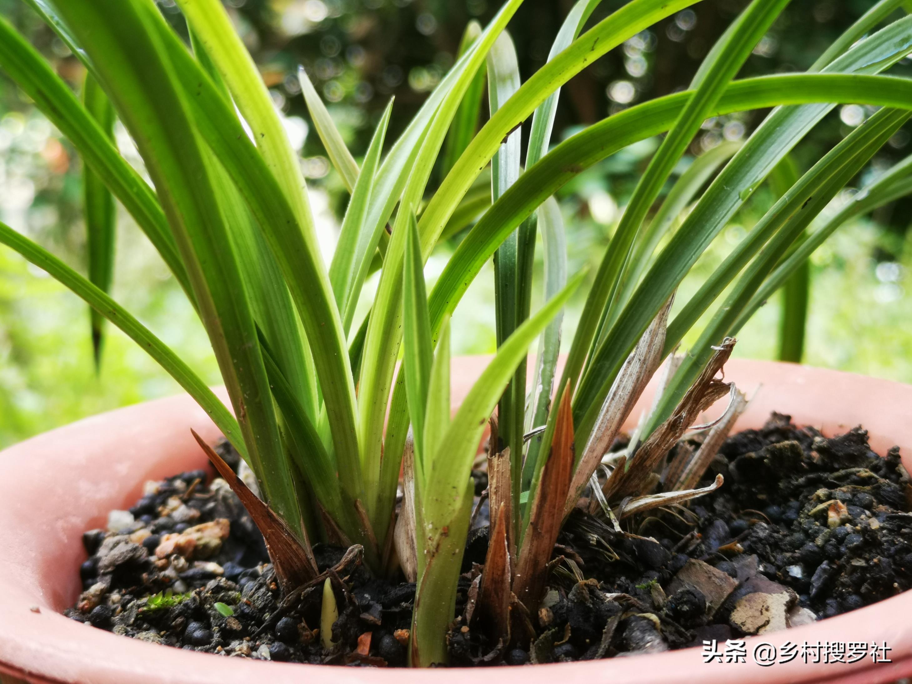 通常新苗(前垄新苗)的叶甲,在两年内是不会干枯的。叶甲是否鲜活有力,可以作为判断兰苗健壮与否的依据。