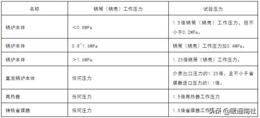 注:表中锅炉本体的水压试验,不包括本表中的再热器和铸铁省煤器。