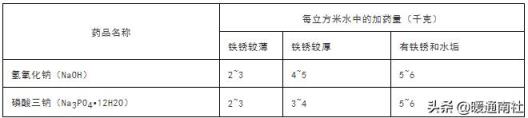 煮炉时的加药配方(两种药品混合加入):