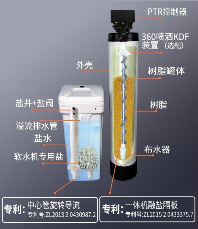 首先我们来讲一下软水机的工作原理,目前市场上大部分家用软水机都是采用的树脂离子交换法,通过树脂上的钠离子与水中的钙镁离子进行交换,从而吸附水中的钙镁离子,达到去除水垢的效果,随着我们用水量增长,树脂不断的吸附钙镁离子,总会达到饱和,这时候就需要对树脂进行清洗再生,采用钠离子反冲洗的方式,通过离子交换,把树脂吸附的钙镁离子置换出来,从而恢复树脂的吸附能力,这个过程也叫离子交换树脂再生;