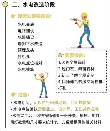 施工方是装修的执行者,和他们沟通好细节,能避免很多后期的麻烦。在施工前,要明确施工细节,比如施工工艺、施工时间等;验收标准也要提前确定,像水电工程的打压测试标准、泥瓦工程的空鼓率标准等;还有增项条款,一定要写清楚,避免施工过程中出现恶意增项,让装修费用超支。