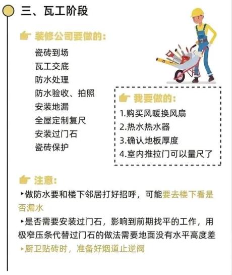 材料进场顺序也很重要,它关系到施工的顺利进行。水电前,要准备好水泥、沙子、管线等材料;泥瓦前,要备好瓷砖、防水涂料;油漆前,要准备好腻子、乳胶漆。提前规划好材料进场时间,既能避免材料堆积占用空间,又能防止因材料短缺导致施工停滞。