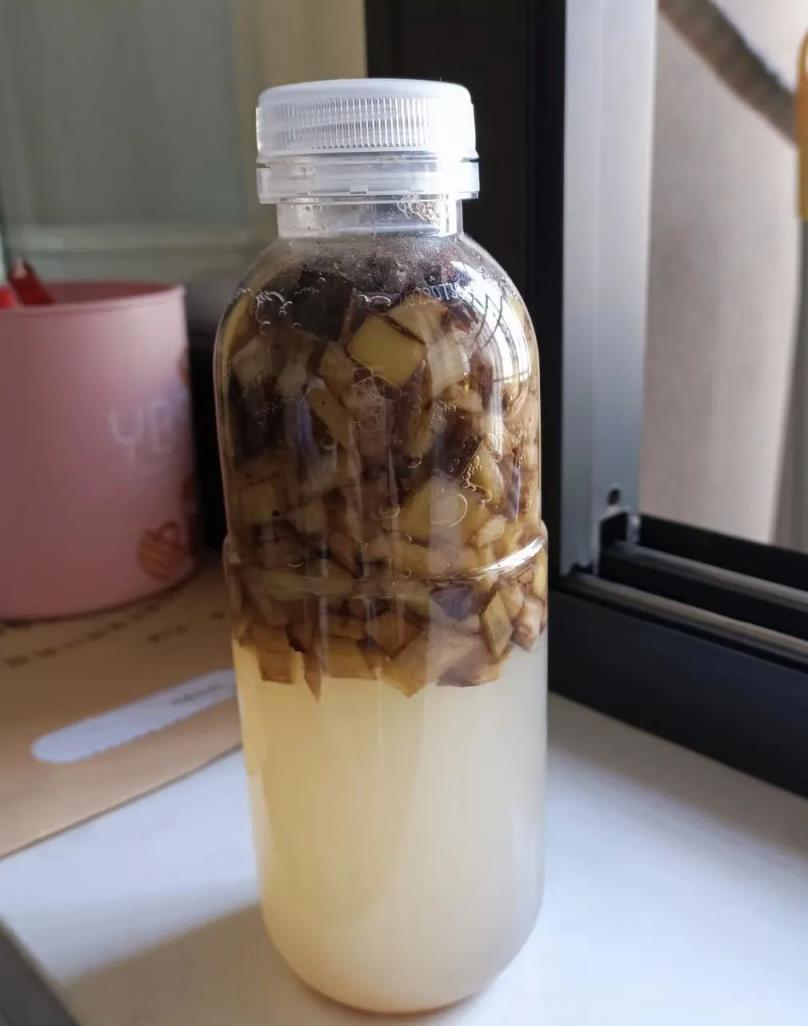 当然,如果家里有淘米水的话,用淘米果在会更好,两者一起发酵,肥力会发挥到极致。把淘米水出和香蕉皮装到一个容器中,可以用矿泉水瓶来代替,放置在阳光充足的地方,每天搅拌搅拌,大概一个月就可以发酵好。