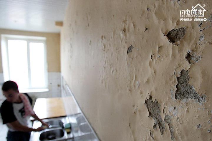 其实渗水也分室内和室外。室外渗水比如外墙和屋面渗水,室内的有卫生间渗水、厨房渗水。由于人们生活,每天都需要用到水,所以说室内渗水导致的墙面潮湿、涂料起皮的情况是最常见的。