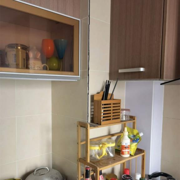 说厨房烟道瓷砖开裂了,问我怎么办,通过业主发的图片看,是烟道阳角处两块瓷砖裂开了。