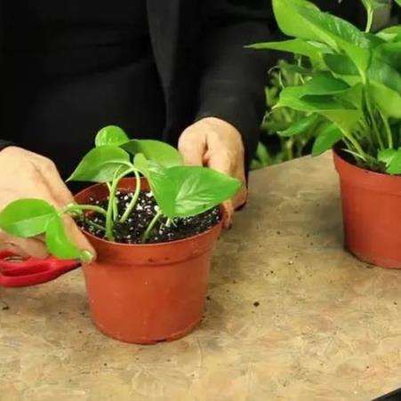选取新鲜的绿萝茎秆,剪成几截,每一截以5-8厘米为宜,插在盆土中,慢慢地根部会长出嫩芽,等根系成长完整后移植到大花盆里。