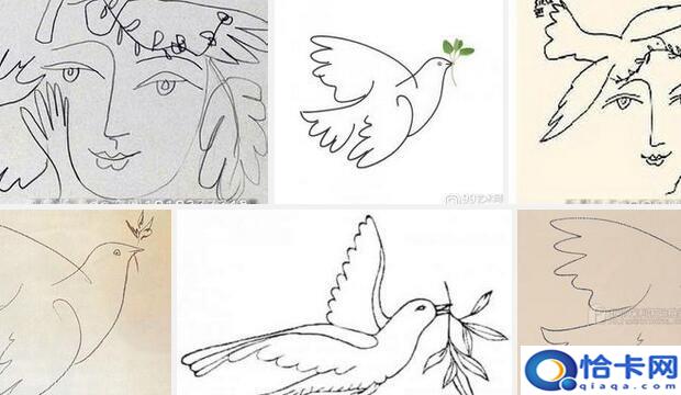 随后,毕加索怀着悲愤的心情,挥笔画出了一只飞翔的鸽子——这就是“和平鸽”的雏形。1950年11月,为纪念在华沙召开的世界和平大会,毕加索又欣然挥笔画了一只衔着橄榄枝的飞鸽。当时智利的著名诗人聂鲁达把它叫做“和平鸽”。由此,鸽子被世界正式公认为和平的象征。