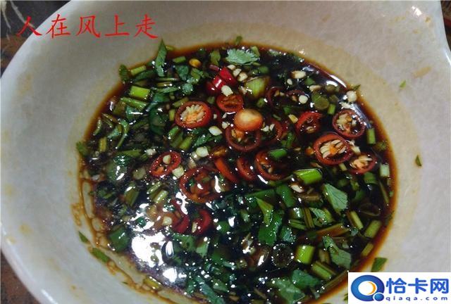 下图是我之前在饺子馆吃饺子时用耗油、生抽、醋、小米椒、香菜末调制的蘸料。
