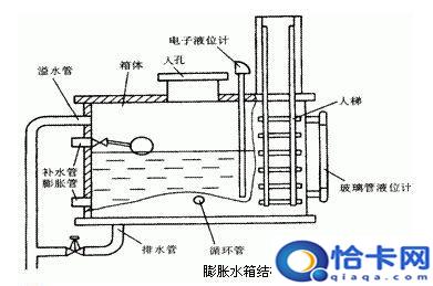 1.膨胀水箱还有给系统补水及稳定系统压力的功能。如果系统出现泄漏或者维修造成水量部分减少,膨胀水箱是最好的自动补水装置,膨胀水箱一般安置在比系统最高点还要高点的位置,其水位高度的变化基本可以忽略,所以它就具有稳定整个系统压力的功能,膨胀水箱的安装高度应至少高出系统最高点0.5m(通常取1.0 ~1.5m)。