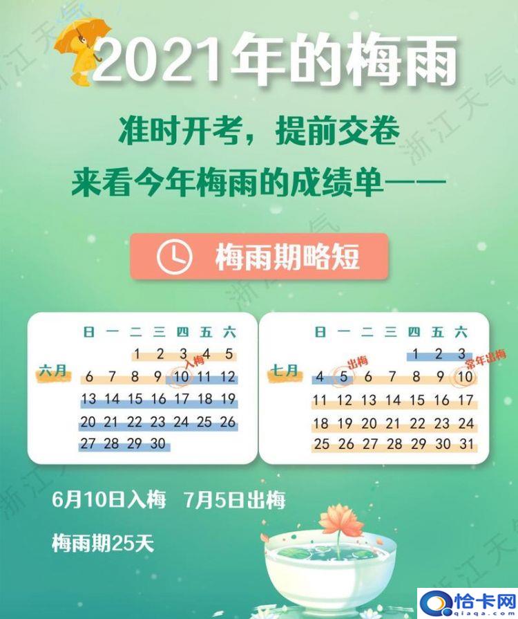 2021年梅雨季节的时间