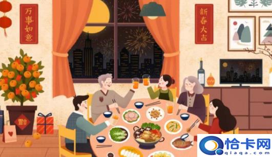 4、守岁,守岁从吃年夜饭开始,这顿年夜饭要慢慢地吃,从掌灯时分入席,有的人家一直要吃到深夜。此夜紧接新年,所以许多家庭之长者,在年夜饭后,不去就寝,围着电视守岁,就是边说边笑,边看中央台的春节晚会。