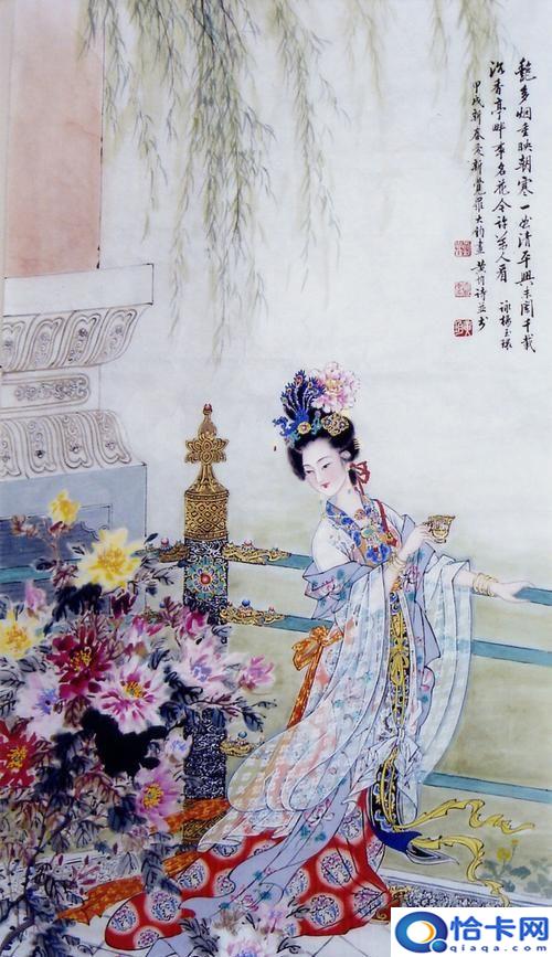 宫女们都说这是杨玉环的美貌,使得花草自惭形秽,羞得抬不起头来。唐玄宗听说宫中有个“羞花的美人”,立即召见,封为贵妃。从此以后,“羞花”也就成了杨贵妃的雅称了。