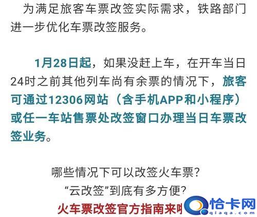1、对于未及时赶上车的情况,乘客不能退票,只能在2小时到始发站到火车票售票窗口改签,改签只能改签一次,改签免费。