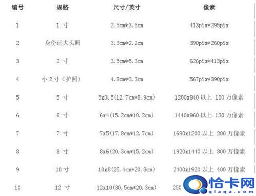 照片的尺寸是以英寸为单位,1英寸=2.54cm,按照目前的通行标准,照片尺寸大小是有较严格规定的: