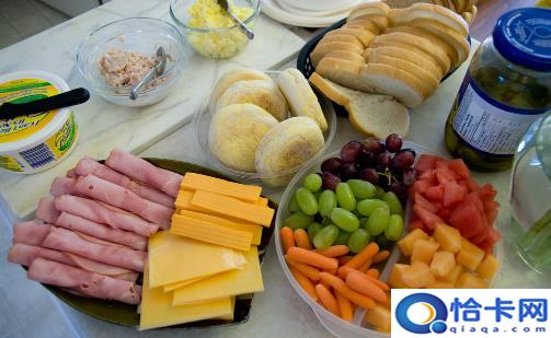 购买:汉堡面包、奶酪、果酱、早餐奶、营养麦片、猕猴桃。