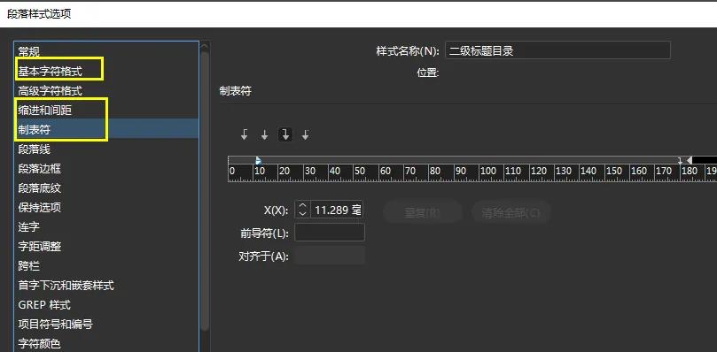 4、我们可以将光标插入目录的一个标题之中,然后在段落样式面板中会自动显示该标题所应用的段落样式,然后双击该段落样式进行修改,修改内容主要是字体、字号、首行缩进或左缩进以及添加治标符等,如图所示。