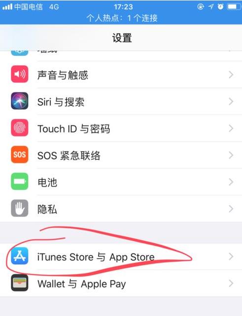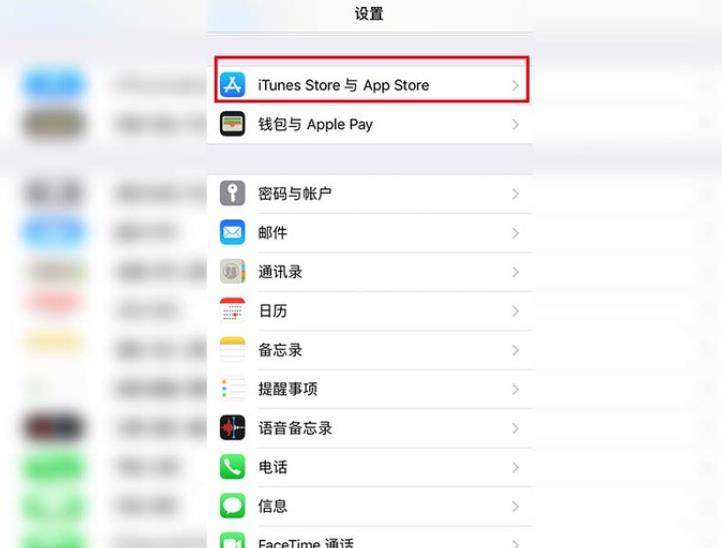 2、点击“设置”图标进入到设置界面。往下滑动可以看到“iTunes Store与App Store”功能项,如图。