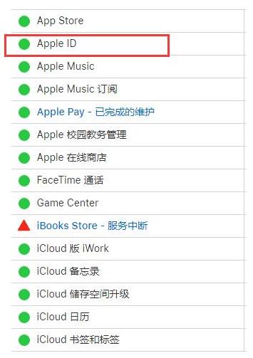 点此查看苹果官网“系统状态”页面上的列表。如果Apple ID不是显示绿色圆点,则说明苹果服务器当前可能出现了状况,您可以稍后再尝试登录。