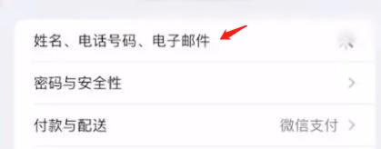 2、跳转到Apple id主页面之后,点击姓名、电话号码及电子邮件一栏。