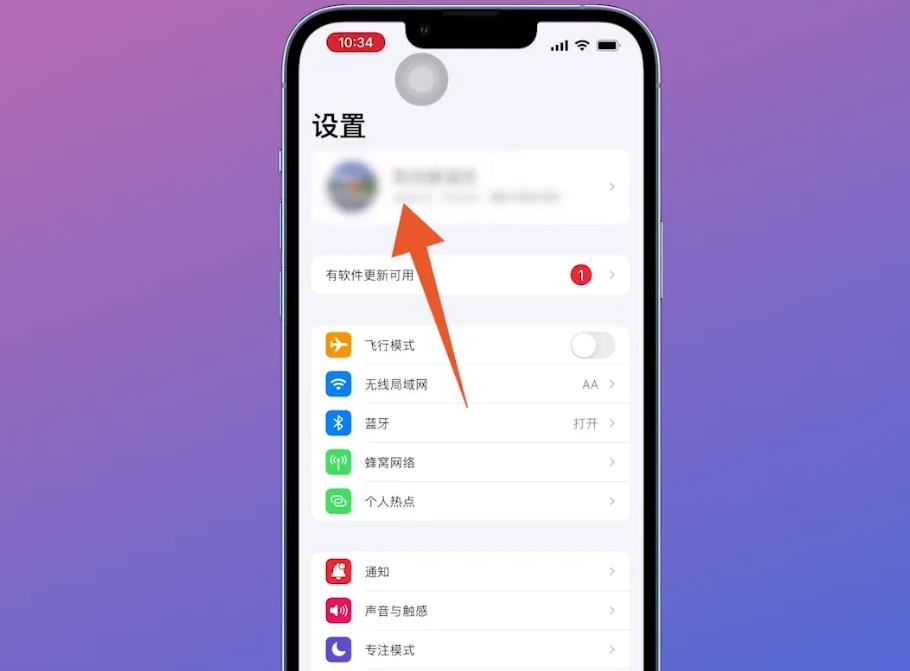1、进入苹果手机设置页面后,点击页面上方的Apple ID。