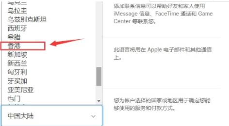 3、在账户的「国家或地区」中找到「香港」选择即可。