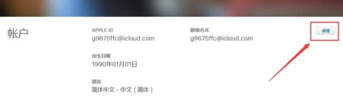 2、把注册好了的国内Apple ID从http://appleid.apple.com登录,登录后进入到苹果账号的管理中心,点击“编辑”账户。
