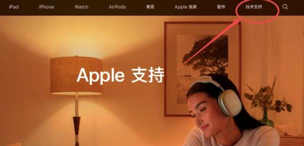 1、电脑浏览器中打开苹果官网,然后点击“技术支持”。