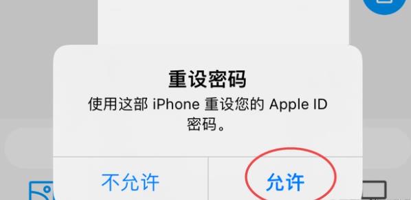 6、打开自己的苹果手机,会收到一个重设密码的通知,点击“允许”。随后会让输入手机密码,再之后的操作就和上述方式一输入手机号码之后的步骤是一样的。