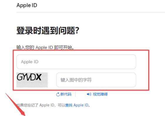 3、输入自己的Apple ID,以及提供的图片字符验证码后,点击“继续”。