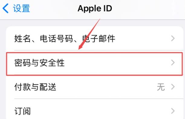 2、打开Apple ID页面之后,点击“密码与安全性”选项。