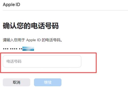 4、输入自己的手机号码(会提供有手机号码的后两位,需要输入对应的自己的手机号码),点击“继续”。