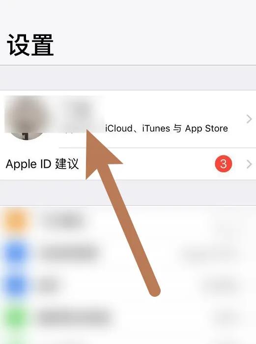 然后在设置界面点击apple ID进入,如下图所示;