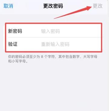 5、输入需要设置的新的id密码后,点击右上角“更改”即可。