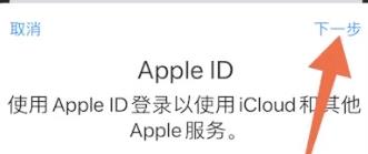 2、跳转到Apple id登录页面后,在Apple id这一栏输入【ID号】,点击页面右上方的【下一步】按钮。
