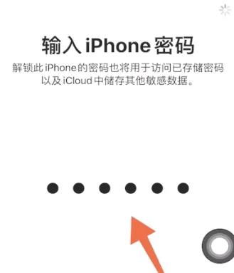 4、页面中会显示正在登录iCloud,跳转到输入iPhone密码页面后,输入自己手机的【锁屏密码】,即可成功登录苹果id。