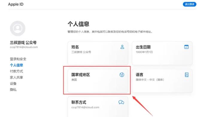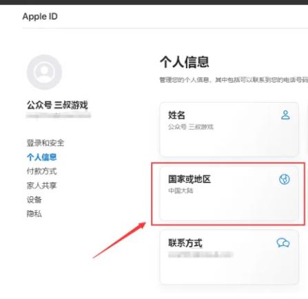 6、登录上之后,在“个人信息”中点击“国家或地区”!