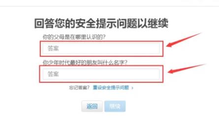 3、输入自己国内ID的正确密保问答的答案,然后点击“继续”!