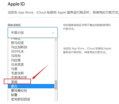 8、在“国家或地区”中选择“美国”(当然你要注册其它地区,你就选择对应的地区)。