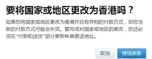 4、选择香港地区后,它会弹出“要将国家或地区更改为香港吗?”选择下方的“继续更新”