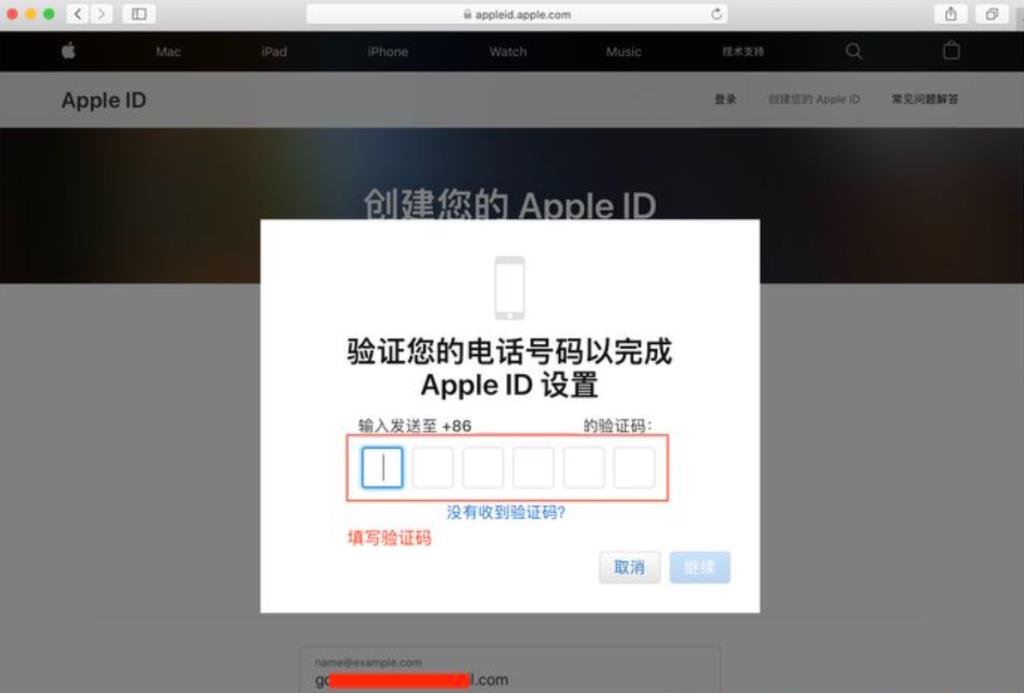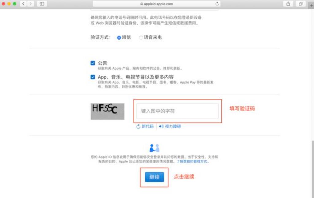 4、手机收到验证码,同样也填写在页面上,点继续。