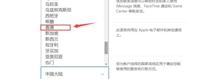 3、在账户的「国家或地区」中找到「香港」选择即可。