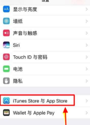 二、点击设置进入后,下拉菜单找到“iTunes Store与App Store”一栏。