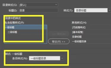 2、生成目录:执行【版面-目录】命令,在弹出的对话框中添加生成目录的段落样式,而且生成目录的每个段落样式都要指定一个目录标题的段落样式,这主要是为了便于统一目录版式,如图所示。