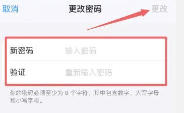 5、输入需要设置的新的id密码后,点击右上角“更改”即可。